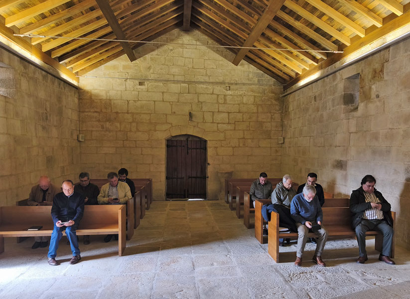 O padre Tiago falou da temática “Padres do Deserto: o Evangelho em traços carregados.” A temática não podia estar mais de acordo com o espaço envolvente da recoleção. Com efeito, recolhidos na ermida de São Domingos, longe a azáfama e do ruido do dia-a-dia, nos sentíamos num ambiente que nos concentrava nas palavras do palestrante duma forma mais sensível. Até porque para os Padres do Deserto a grande tentação é a não concentração. O desvio do essencial, como nos foi recordado logo a abrir: