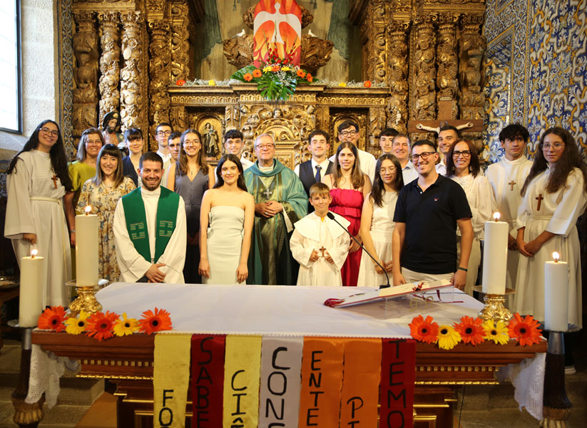 Chegados ao domingo, dia do Senhor, toda a comunidade cristã aguardou a chegada do nosso Pastor para a celebração da Eucaristia conclusiva da Visita Pastoral com a administração do Sacramento do Crisma a 15 jovens. A estes jovens, o nosso Bispo apelou a serem sinais de Deus na comunidade e no mundo. Ser crismado é ser “outro Cristo” para os outros. A propósito do Evangelho proclamado e destacando as figuras de Marta e Maria, fomos interpelados a ter em atenção as demasiadas ocupações e distrações do quotidiano, que por vezes, são impedimento para percebermos que “uma só coisa é necessária”: sentarmo-nos aos pés de Jesus, para ouvir a sua Palavra. Após a celebração eucarística todos foram convidados a degustar um espumante de honra e bolo, para assinalar o encerramento da Visita Pastoral.