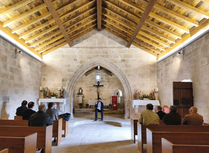 O padre Tiago falou da temática “Padres do Deserto: o Evangelho em traços carregados.” A temática não podia estar mais de acordo com o espaço envolvente da recoleção. Com efeito, recolhidos na ermida de São Domingos, longe a azáfama e do ruido do dia-a-dia, nos sentíamos num ambiente que nos concentrava nas palavras do palestrante duma forma mais sensível. Até porque para os Padres do Deserto a grande tentação é a não concentração. O desvio do essencial, como nos foi recordado logo a abrir: