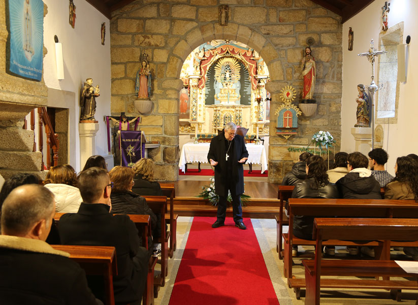 A Capela de São Sebastião foi o ponto de encontro, com a intervenção de José Maria Caria, em nome da comunidade de Macieira, deu as boas vindas da todos, especialmente ao Sr. Bispo e a quem o acompanhava, desejando que se sinta verdadeiramente em casa e, por outro lado, que todos saibam acolher com alegria os seus ensinamentos e o testemunho da sua presença amiga.