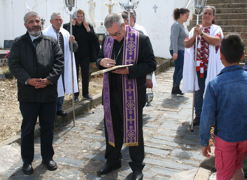 O Senhor D. António Rezou por todos quantos já partiu para o Pai no cemitério. Visitou a Igreja Matriz, e capelas locais na igreja paroquial administrou o Sacramento da Unção dos Enfermos. Depois de uma conversa com todos os presentes, fui servido um lanche, amavelmente oferecido pela, Junta de Freguesia.
