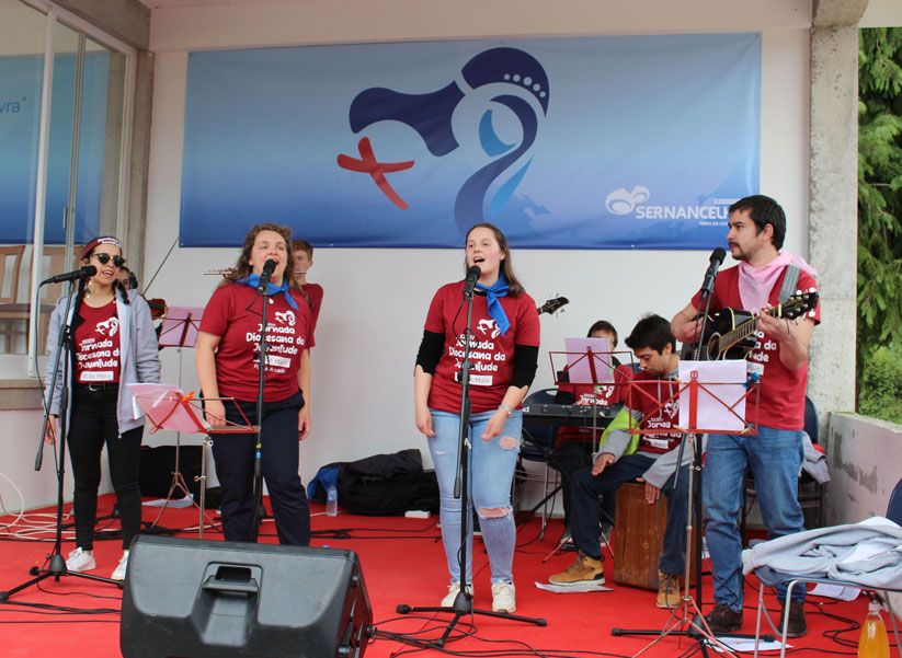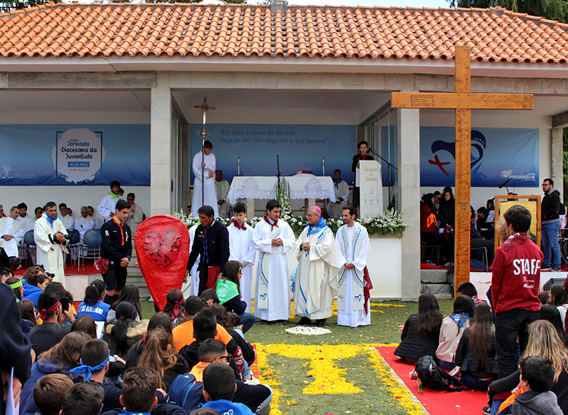 Ao fim da manhã, todos reunidos num ambiente muito belo, celebramos a Eucaristia. Na sua homilia, o nosso Bispo pediu-nos que seguíssemos o exemplo de Maria e colocássemos a nossa juventude ao serviço de Deus.