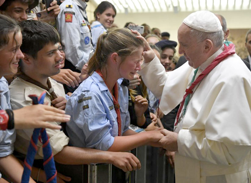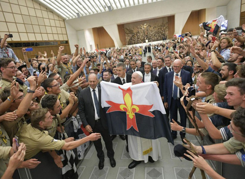 O Papa Francisco recebeu no passado dia 3 de agosto, no Vaticano, um grupo de 5 mil escuteiros de 21 países europeus, incluindo Portugal, que caminharam de 27 de julho a 3 de agosto, por rotas de santos católicos, em direção a Roma.